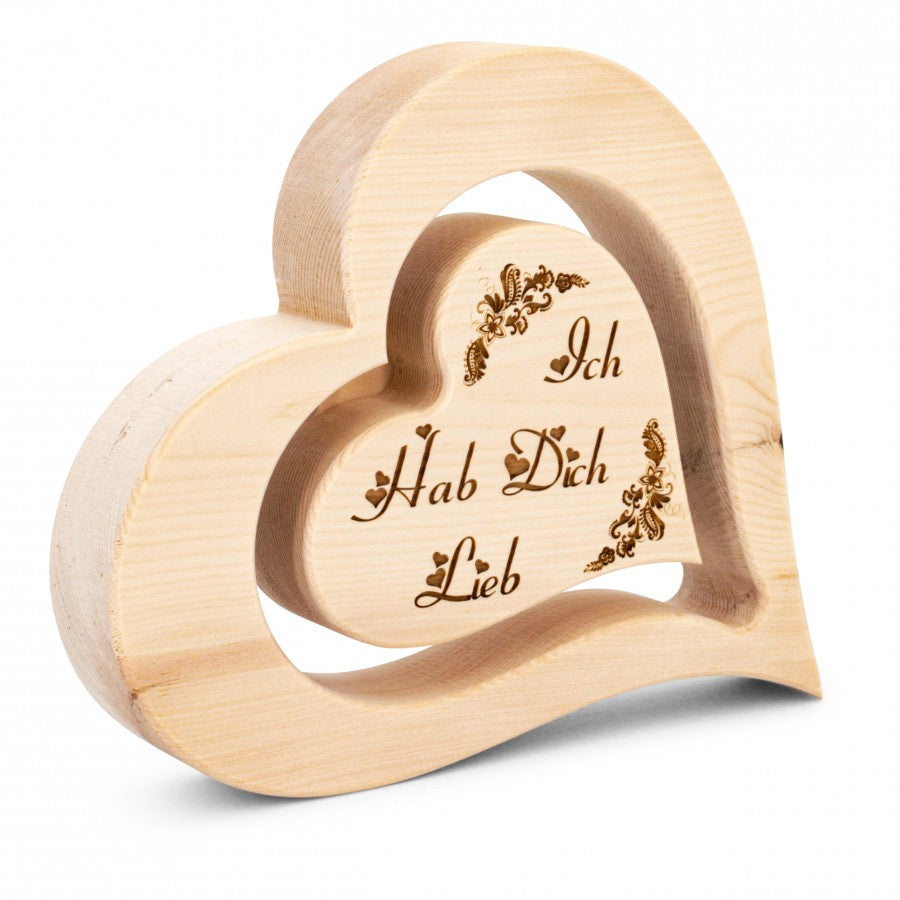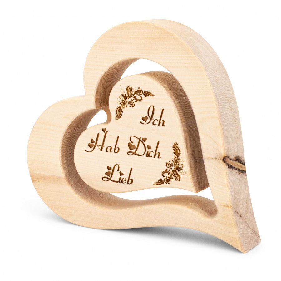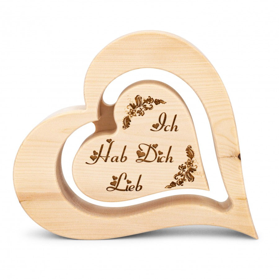 Zirbenherz 20cm Ich hab dich lieb mit Namensgravur