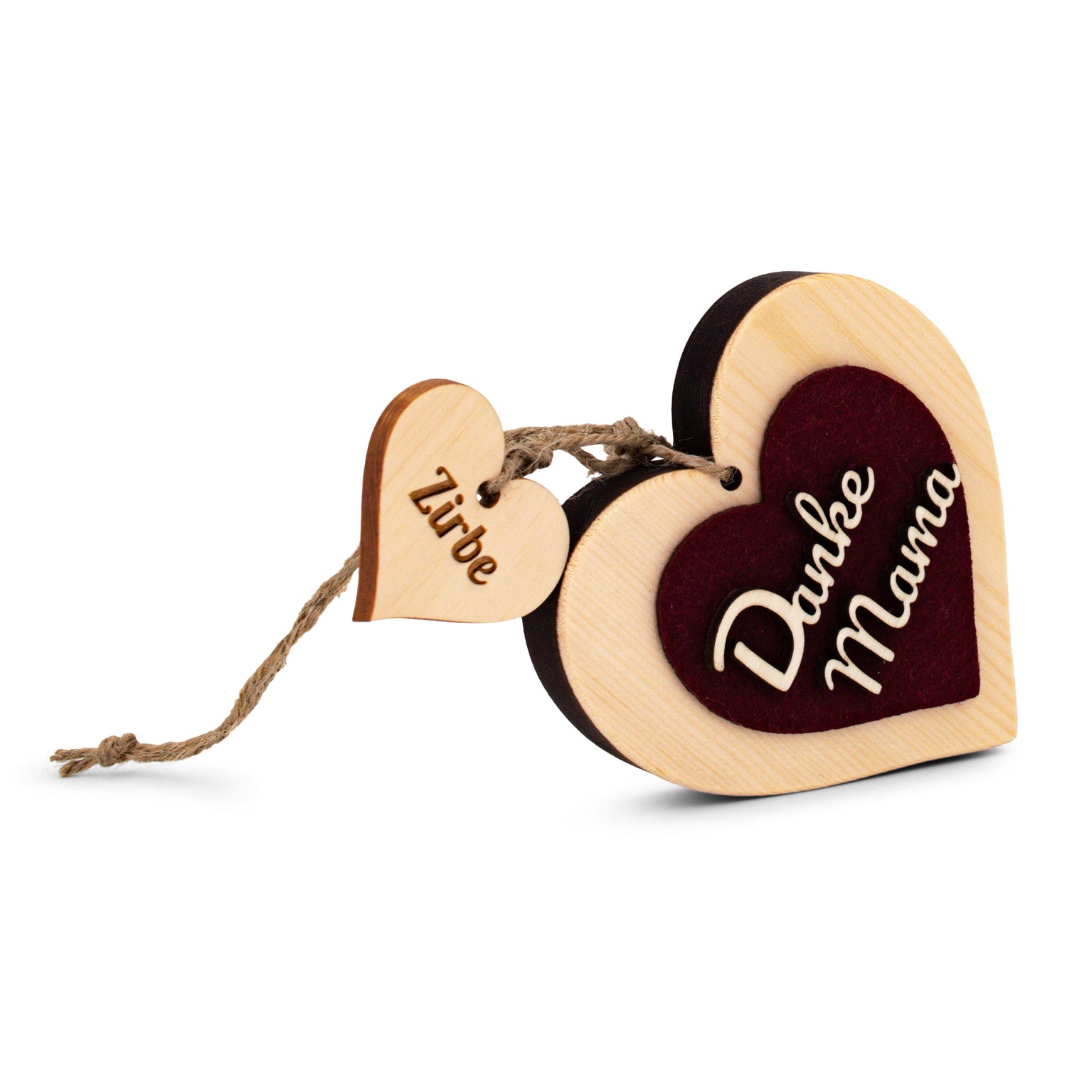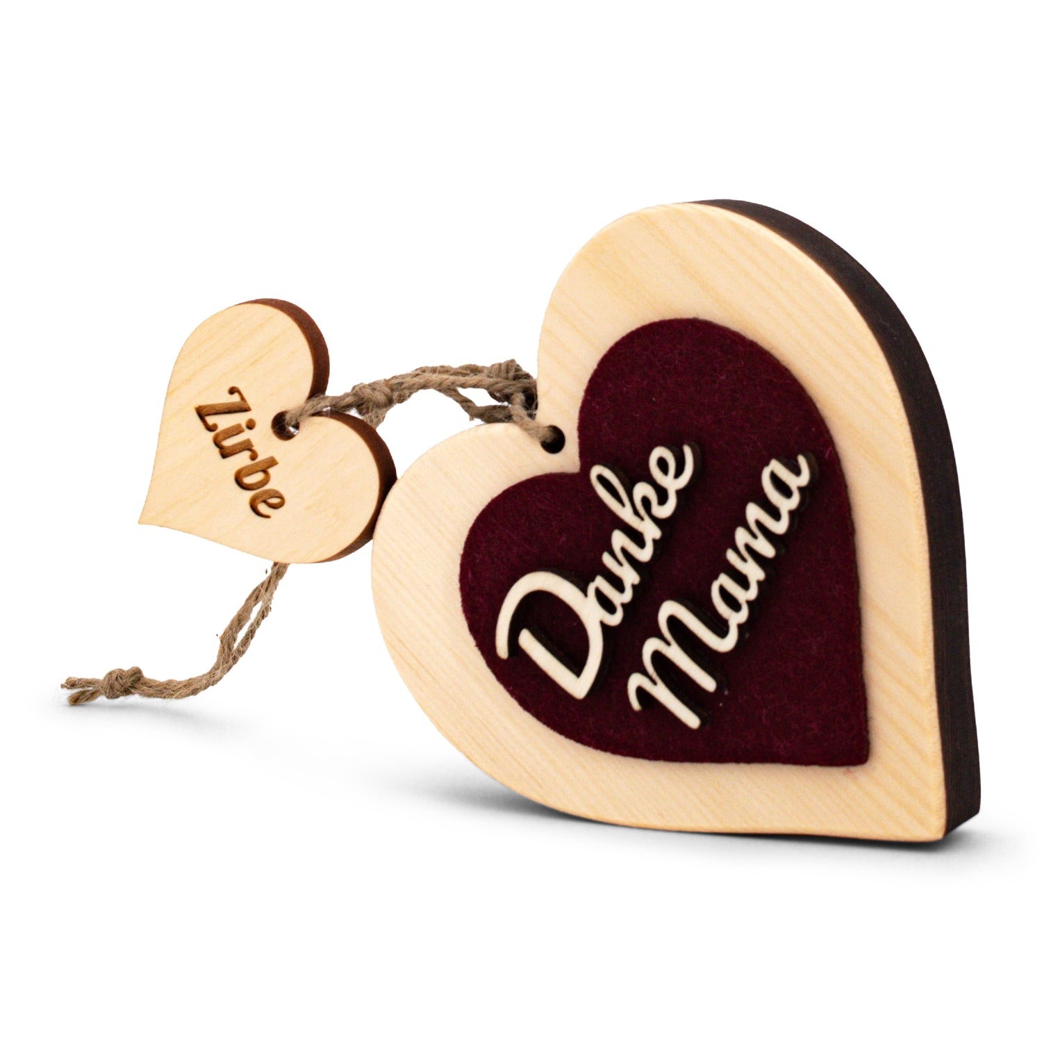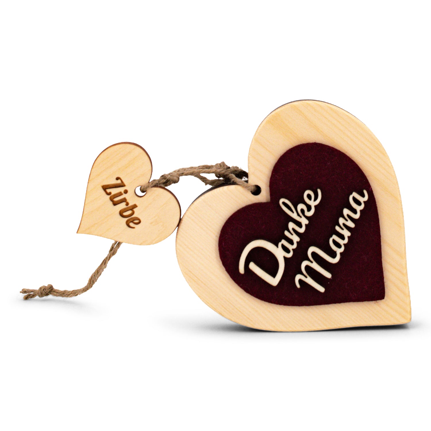 Zirbenherz Danke Mama mit rotem Filz